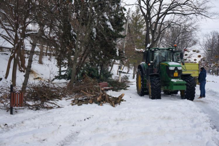 Mulți copaci de pe faleza Dunării, dar și din celelalte parcuri din municipiu – Monument, Grădina Mare – au cedat sub greutatea zăpezii și fie s-au rupt cu totul, fie și-au pierdut mai multe crengi. Echipele ”Seroplant” au intervenit în ultimele zile pentru îndepărtarea și mărunțirea crengilor rupte, care au fost încărcate în remorci și transportate la un depozit. Materialul lemnos rezultat în urma acestor acțiuni va fi împărțit persoanelor care beneficiază de ajutoare sociale, după cum ne-au explicat angajații ”Seroplant” aflați, ieri, pe teren.
