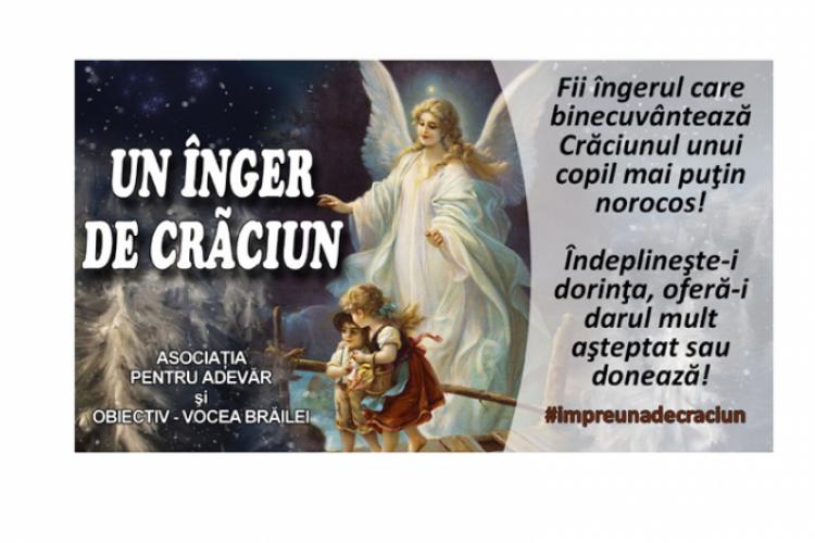 Asociaţia pentru Adevăr şi cotidianul “Obiectiv – Vocea Brăilei” a deschis, vineri, campania “Un înger de Crăciun”, o acţiune caritabilă prin care ne dorim să le oferim o fărâmă de fericire copiilor mai puţin norocoşi din municipiul şi judeţul Brăila. Sunt îngeraşi care deşi duc lipsă de multe lucruri materiale, merg la şcoală, învaţă foarte bine şi, la fel ca toţi ceilalţi copii, au visuri pe care vor să şi le împlinească.