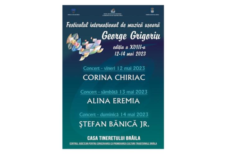 Pregătirile pentru cea de-a XVIII-a ediție a Festivalului Internațional de Muzică Ușoară „George Grigoriu”, de la Brăila, au intrat pe ultima sută de metri, iar organizatorii promit un eveniment de zile mari, cu particparea unor mari nume ale muzicii ușoare românești: Corina Chiriac, Alina Eremia și Ștefan Bănică Jr.