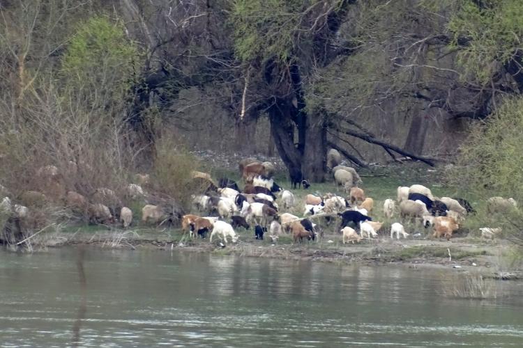 Cu animalele la păşunat, ilegal, în zona împădurită de pe malul Dunării