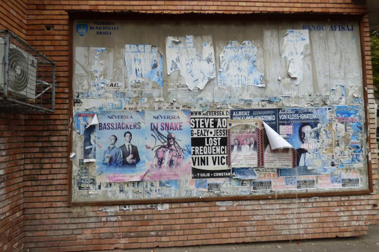 Gropile din asfalt; unele coşuri de gunoi prost amplasate, vandalizate, negolite luni de zile sau mâncate de rugină; mobilier stradal distrus de către inconştienţi; indicatoare din staţii sau de orientare turistică derutante etc – sunt doar câteva din multitudinea de lucruri doar aparent mărunte şi care nu sunt luate în seamă de către ai noştrii edili – însă cu impact negativ asupra celor care tranzitează Brăila (oraş turistic, nu-i aşa..). Iar la acest capitol se adaugă şi afişajul stradal. Normal, aceasta ar trebui să se facă pe panouri precum cel de la Călăraşi colţ cu Roşiori (se pare unicul din oraş), însă de la o vreme şi acesta este răzuit de afişele adăugate anul trecut unele peste altele, decolorate şi vechi de câţiva ani. Mai există un cilindru din beton la intersecţia Mihai Bravu cu Călăraşi, însă şi acela cu afişele rupte de vânt şi atârnând total inestetic. Situaţia se repetă şi în cazul acelor console metalice pentru panourile mari publicitare, unele vandalizate sau parazitate cu tot felul de afişe şi anunţuri care ar trebui să-şi găsească locul în mass media.