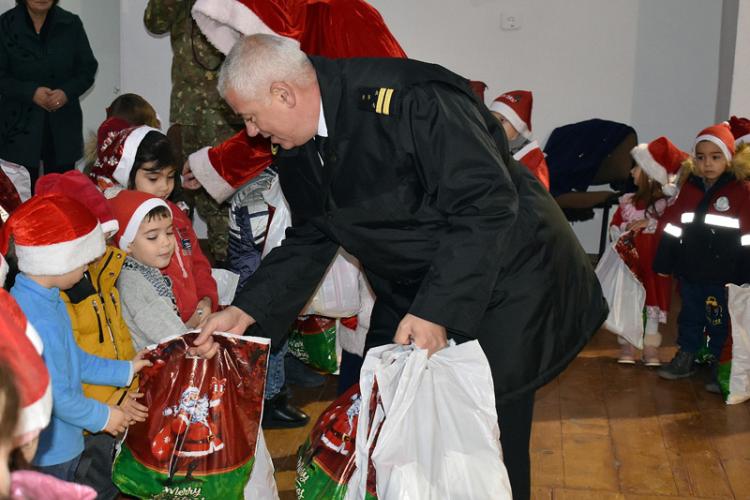 • zilele acestea, „Moșul cu vipușcă” a ajuns și la sediul Divizionului 67 Nave Purtătoare de Artilerie, unde a fost întâmpinat de zeci de copii • la fel ca la Gropeni, ajutoarele Moșului au fost marinarii militari de la Flotila Fluvială „Mihail Kogălniceanu”, care au împărțit daruri și au cântat colinde