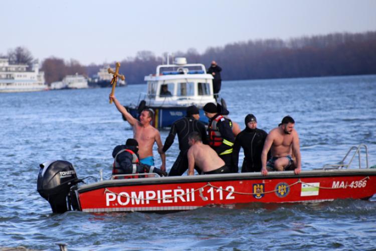 Șase temerari au sărit în apele reci ca să prindă Crucea Bobotezei
