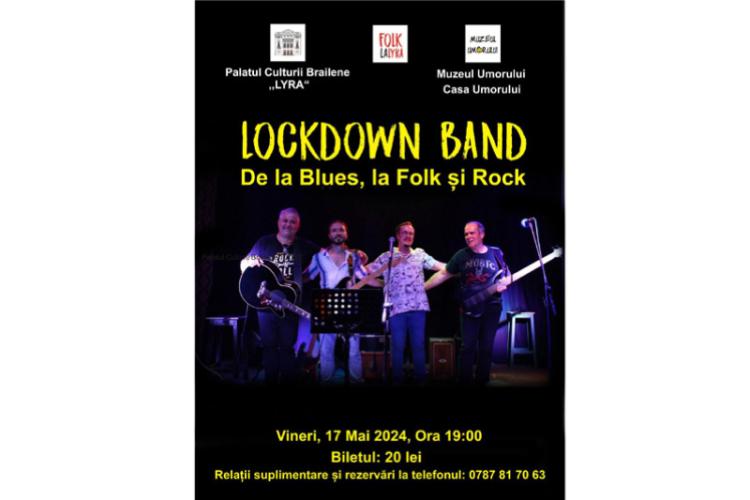 Astăzi, 17 mai 2024, de la ora 19:00, Palatul Culturii Brăilene „LYRA” prezintă ”Lockdown Band” în concertul ”De la Blues, la Folk și Rock”.