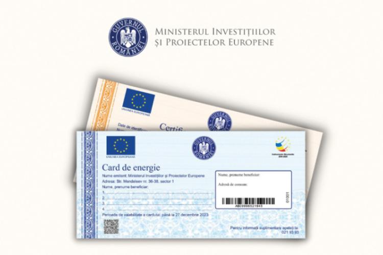 Ajutorul pentru plata facturilor la energie, în valoare de 1.400 de lei, prinde contur. Deja a fost publicat și ghidul cardurilor de energie. În acest an, Ministerul Investițiilor și Fondurilor Europene (MIPE) oferă românilor vulnerabili, din fonduri europene, sprijin pentru plata facturilor la energie, sub formă unor carduri pe suport de hârtie, în valoare de 700 lei de 2 ori/ an. Cardurile pentru încasarea ajutoarelor vor fi emise și distribuite de Compania Națională Poșta Română, în urma unor centralizări transmise de către Ministerul Muncii, Solidarității Sociale și ANAF. Odată ajunse la persoanele eligibile, acestea vor putea fi folosite pentru plata facturilor de energie (total sau parțial) după cum urmează: electricitate, gaz, energie termică în sistem centralizat de termoficare, butelie, lemn de foc, păcură, peleți și alte materiale de încălzire.
