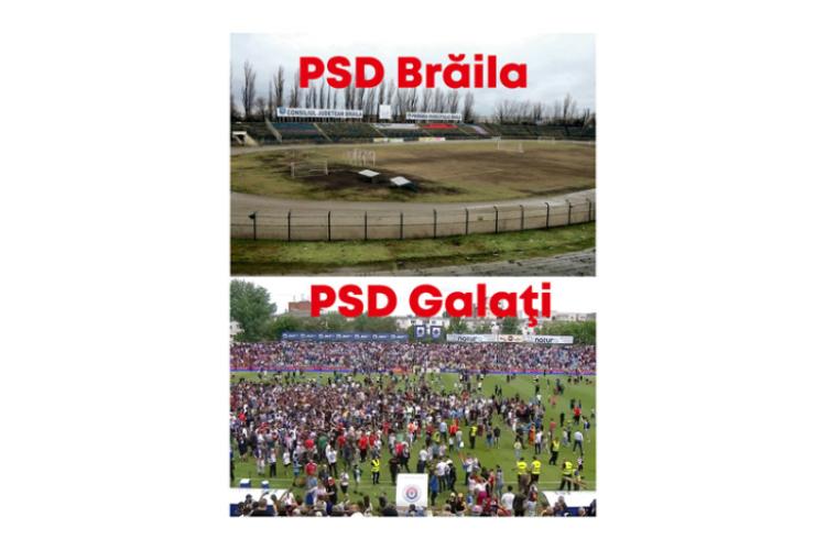 În încercarea de a-și întări acuzațiile, parlamentarul a transmis două fotografii care înfățișează stadionul de fotbal din Brăila și pe cel din Galați.