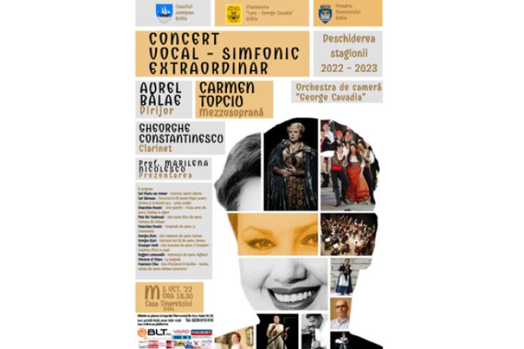 „Debutul stagiunii simfonice 2022 – 2023 stă sub semnul reîntoarcerilor la rădăcini, căci atât dirijorul Aurel Bălae, cât și mezzosoprana Carmen Topciu, prim solistă a Operei din Brașov, își trag seva din același vechi oraș Brăila, încărcat de istorie și dragoste pentru muzică. Tot o reîntâlnire încărcată de emoție este și cea a lui Gheorghe Constantinescu, clarinetist, cu veșnicul său „profesor” Carl Barmann, al cărui Concert în Mi bemol Major op. 6 va fi interpretat în primă audiție la Brăila”, precizează, într-un comunicat, prof. Alexandra Gurgu, secretar muzical al Filarmonicii „Lyra – George Cavadia” Brăila.
