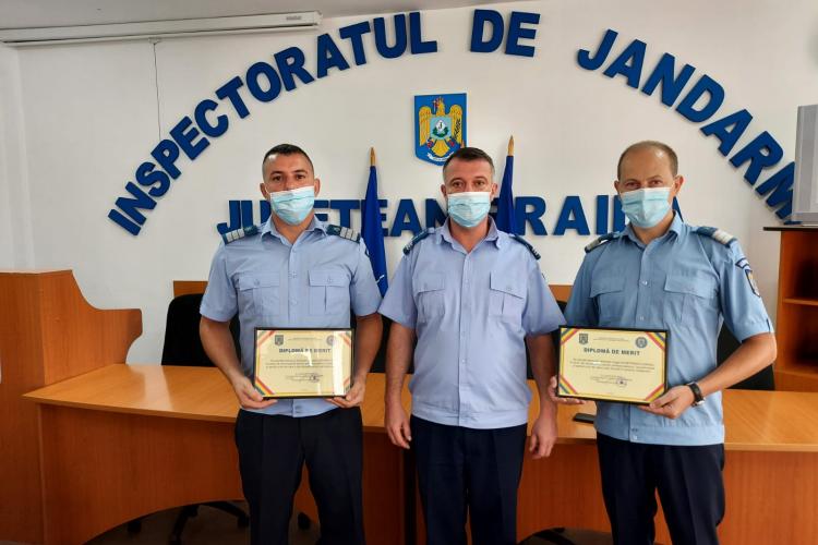 Diplome de merit pentru doi subofițeri jandarmi care s-au remarcat prin profesionalism, operativitate și spirit civic în timpul liber