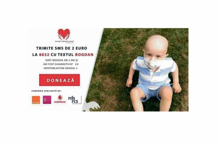 • un simplu SMS la numărul 8832 cu textul “Bogdan” îi poate salva viaţa micuţului de numai 3 anişori diagnosticat cu tumoră la ficat • aflat în continuare la tratament în Turcia, Bogdi a trecut cu bine peste o nouă şedinţă de chimioterapie şi se pregăteşte de operaţia de extirpare a tumorii • costurile intervenţiei sunt enorme, însă noi îl putem ajuta