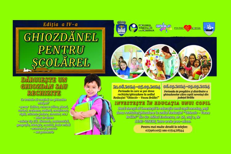 Donaţiile pentru campania ”Ghiozdănel pentru şcolărel” au început să vină pe adresa redacţiei. Prin această iniţiativă ne dorim să strângem rechizite școlare pentru a oferi copiilor o șansă la un viitor mai bun, un sprijin de a-și urma visele. Donând rechizite școlare, investim în vitorul unei generații. Fiecare copil merită o educație de calitate, iar rechizitele sunt intrumentele de bază care le permit să își construiască cunoștințele și să își atingă potențialul maxim.