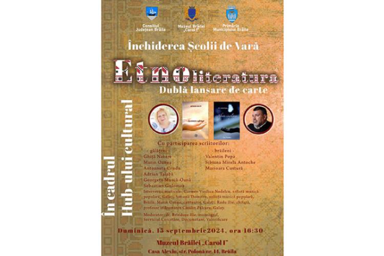Muzeul Brăilei „Carol I” organizează duminică, 15 septembrie 2024, începând cu ora 16.30, la Colecțiile Etnografice/Casa Alexiu (monument istoric situat în Strada Polonă nr. 14) o serie de activități în cadrul hub-ului cultural „Etnoliteratura”. Este vorba de o dublă lansare de carte și de închiderea Școlii de Vară „Tradiții și obiceiuri la Dunărea de Jos și Dobrogea”.