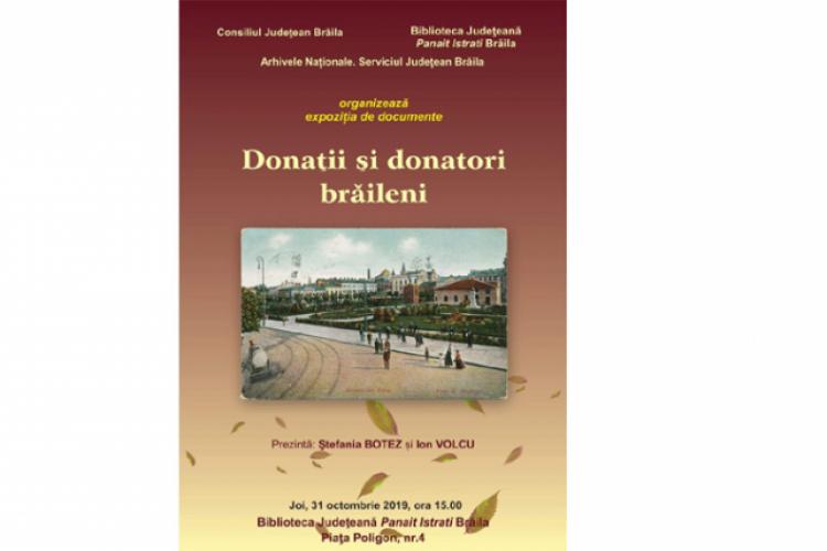 “Expoziţia documentară îi prezintă, în special, pe oamenii de afaceri care donau prin testamente, fiind încă în viaţă, sume importante de bani Primăriei Brăila ori diverselor instituţii, pentru construcţii de şcoli şi grădiniţe, pentru întreţinerea de paturi în spitale, pentru ajutorarea copiilor săraci, dar sârguincioşi la învăţătură. Serviciul Judeţean Brăila al Arhivelor Naţionale va expune, numai el, 36 de documente originale redactate în greacă şi română (cu şi fără alfabet chirilic), inclusiv actul de donaţie rămas de la Elena Cuza, pentru o şcoală de fete din Brăila”, ne-a precizat Ştefania Botez, iniţiatoarea manifestării de joi, de la bibliotecă.