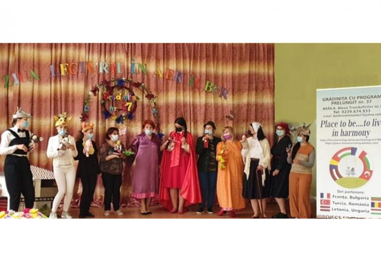 Punctul central al zilei a fost însă, prezentarea scenetei create de cadrele didactice ale grădiniței, inspirate de mascotele reprezentative ale celor 6 povești ale țărilor partenere în proiectul „Place to be…to live in harmony” finanțat prin Programul Eramus+ de către Uniunea Europeană. Personaje ale poveștilor „Scufița Roșie”, „Iedul cu trei capre”, „Fata cu părul de aur”, „Mănușa”, „Cine vinde murături”, „Micul porcușor și lupii”, și-au dat mâna și pe scena în aer liber a grădiniței și au devenit eroi într-o nouă poveste.