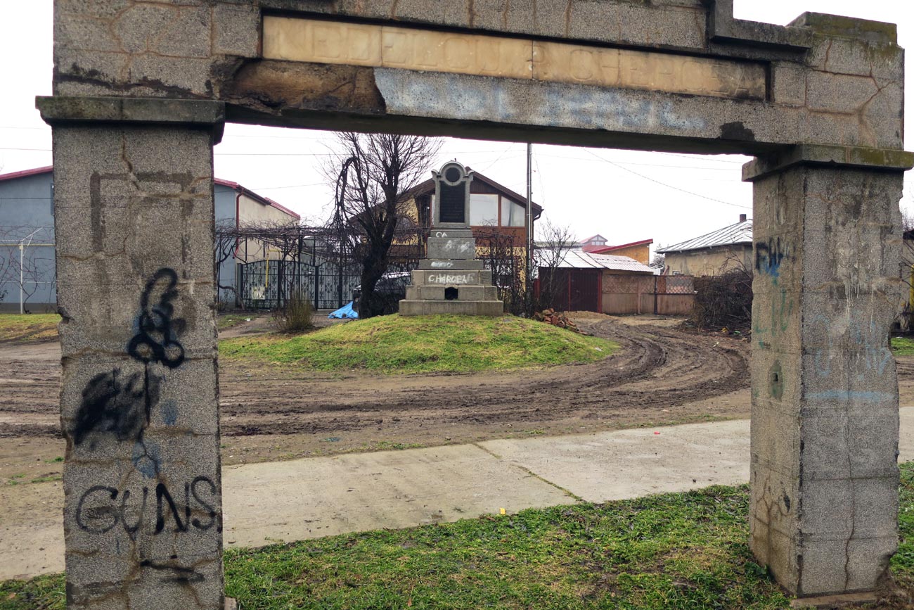 În jur, unde era pe vremuri o grădină cu flori, acum e pământ gol, transformat în mocirlă când plouă, sau sursă de praf în zilele toride de vară. În ultimii ani, fix în acel spațiu, care ar fi trebuit să fie zonă de protecție a monumentului, au avut organizare de șantier firmele care au făcut asfaltări în cartierul Chercea. Au depozitat acolo moloz sau materiale de construcții și și-au parcat utilajele. Lucrările s-au terminat între timp, locul a fost eliberat, însă este tranzitat de mașinile celor care au casele construite chiar în spatele monumentului. Iar în zilele ploioase, urmele roților lasă dâre adânci în noroi, ca niște răni pe sufletul monumentului abandonat în uitare…