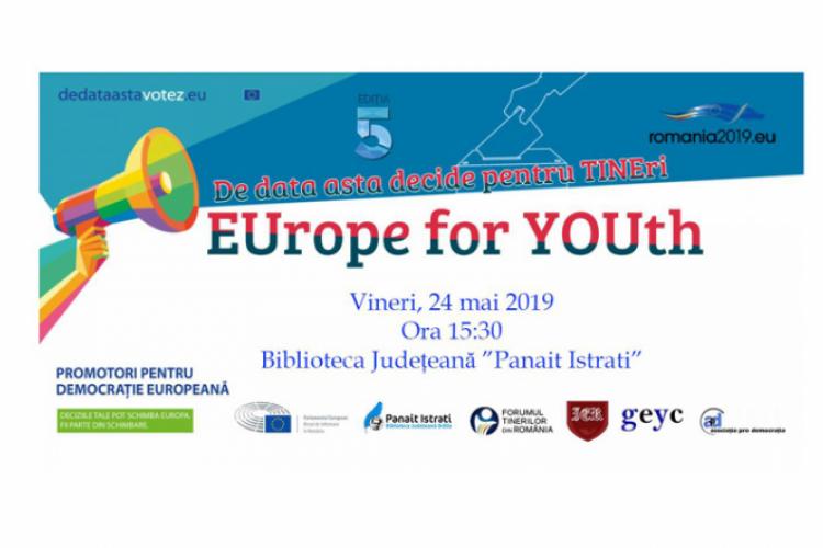Tinerilor din România – Brăila invită tinerii la evenimentul „EUrope for YOUth”, ce are drept scop principal informarea acestora cu privire la Uniunea Europeană şi instituţiile acesteia, oportunităţile pe care le au tinerii în Uniunea Europeană, România în contextul actual în cadrul Uniunii Europene, alegerile europarlamentare şi importanţa votului în societatea contemporană. Totodată, evenimentul se doreşte a fi şi o dezbatere cu privire la problemele actuale din societatea europeană.“Dacă doreşti să fii la curent cu ultimele oportunităţi din mediul european, să afli mai multe despre procesul decizional din cadrul Uniunii Europene şi să fii timp de o zi unul dintre tinerii direct implicaţi în simularea procesului decizional şi să iei legătura cu reprezentaţi ai autorităţilor publice, te aşteptăm alături de noi”, este mesajul organizatorilor.
