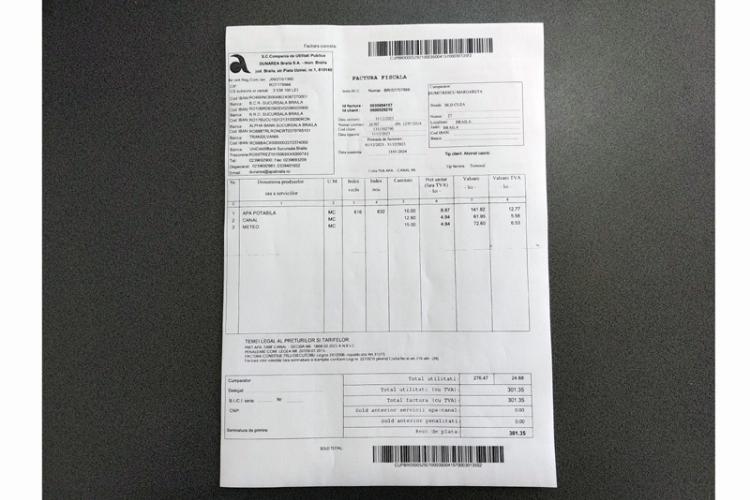 „Subsemnatul Florin Sofronov, domiciliat în Brăila, B-dul Alexandru Ioan Cuza nr. 27, vă fac cunoscut faptul că, în data de 4 ianuarie 2024, am primit factura nr. 01707866/31. 12. 2023, emisă de Compania de Utilități Publice „Dunărea” Brăila SA. Am constatat cu uimire că, la punctul 3 al facturii, și anume METEO, am de plată 15 metri cubi de apă! Transformând 15 mc în litri (1 mc â 1.000 litri), rezultă o cantitate de apă foarte mare de apă, mai precis 15.000 de litri. Altfel spus, în fiecare zi a lunii decembrie, am avut câte 484 de litri de apă în curte (15.000 împărțit la 31 de zile)!