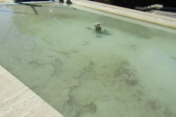 Iar pentru ca totul să fie complet anapoda, de câțiva ani apa din bazinele fântânii cinetice este verde sau lăptoasă. Apa din cuve ar trebui să fie limpede-cristal, precum în piscine și la bazinele de înot. Or, la noi, din cauza impurităților din apă se ajunge inclusiv la acea mătuire a componentelor din inox și a spoturilor multicolore. Iar cine vrea să consulte cum se procedează preventiv în alte orașe și țări, va afla despre câteva condiții obligatoriu de respectat: curățarea odată pe săptămână a filtrelor de la pompe, și spălarea (tot săptămânal) a nisipului de filtrare; adăugarea, la 7 zile, a substanțelor antialge; curățarea bazinului și a cuvelor de frunze, hârtii etc. În plus, prin alte părți, artezienele nu se construiesc în apropiere de copaci. Şi mai este un aspect, primordial, spun specialiștii în domeniu: montarea unor dozatoare automate pentru clor (nu prin adăugarea de cloramină, care ar putea da apei acel aspect lăptos), iar zilnic (!) să fie determinați și menținuți doi parametri: pH-ul apei (între 7,2 -7,6), dar și conținutului de clor (între 0,6 și 1,5 mg/l). Cu precizarea că nerespectarea strictă a dozajelor stabilite științific conduce la poluare, un consum inutil de clor; la afectarea aspectului/mirosului apei și a componentelor fântânii (bazine, circuitul tehnologic). Specialiștii mai spun că ar trebui, periodic, să se facă o verificare a durității apei, iar în caz de necesitate să se folosească o instalație de dedurizare. Ori, la fântâna cinetică brăileană s-au format stalactite pe tavanul sălii mașinilor, atât de dură este apa care se infiltrează din bazinele exterioare, apă care circulă, de altfel, și prin instalațiile de pompare…