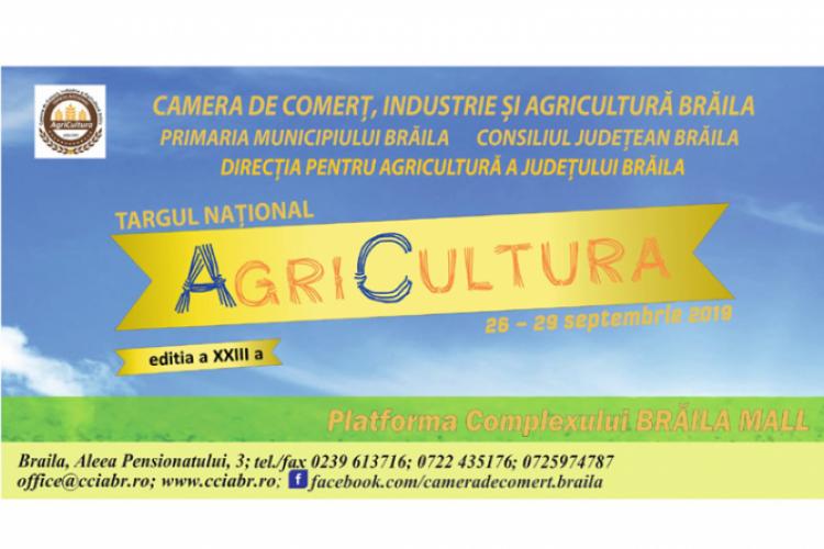 Camera Comerţ, Industrie şi Agricultură Brăila organizează, în parteneriat cu Primăria Municipiului Brăila şi Consiliul Judeţean Brăila, cea de a 23-a ediţie a Târgului Naţional AgriCultura.