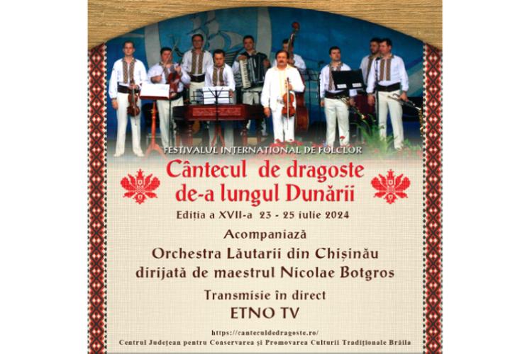 Festivalul Internațional de folclor „Cântecul de dragoste de-a lungul Dunării” va debuta în fiecare seară la ora 19.00, va fi prezentat de Georgel Nucă și Adriana Ștefan și va fi transmis, prin streaming live, pe pagina de facebook centrul.de.creatie.braila.