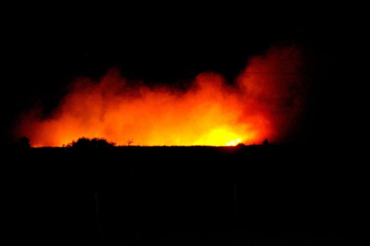 Flăcări în noapte, pe câmpurile de la Comăneasca. Se înmulțesc incendiile de vegetație provocate de indivizi care aprind focul intenționat