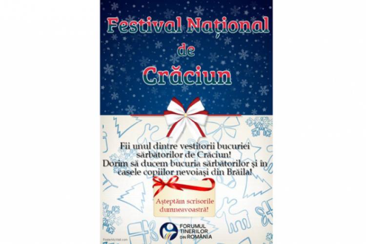Cu ocazia sărbătorilor de iarnă, membrii Forumului Tinerilor din România – Brăila se transformă în spiriduşii Moşului şi organizează prima ediţie a Festivalului Naţional de Crăciun, eveniment prin care îşi propun să ajungă la peste 500 de copiii nevoiaşi din Brăila.“Împreună cu echipa de tineri voluntari, ne dorim ca din puţinul fiecăruia dintre noi să împărtăşim dragostea şi bucuria Crăciunului şi celor în suferinţă. Astfel, cu ajutorul şi sprijinul dumneavoastră, vrem să împlinim dorinţele a cât mai multor copii din judeţul Brăila”, spun “spiriduşii Moşului”.