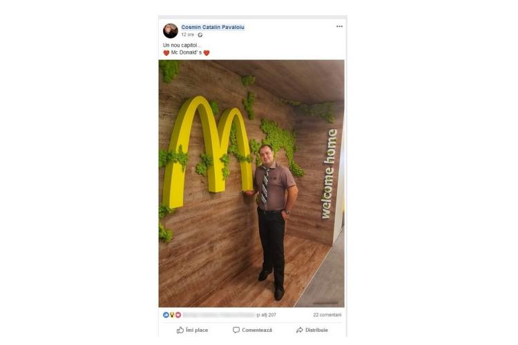 Ex-consilier municipal PPDD/UNPR, fost președinte PER Brăila, Cosmin Păvăloiu a postat, ieri, pe rețelele de socializare un mesaj din care se înțelege că va conduce restaurantul McDonald’s Brăila. Acesta a punctat că este un “nou capitol” pentru el, mesajul fiind însoțit de o fotografie a sa, alături de sigla francizei. Contactat de redactorii “Obiectiv – Vocea Brăilei”, Păvăloiu a confirmat că va face parte din echipa managerială care va deschide restaurantul McDonalds în orașul nostru. Deocamdată acesta susține că este într-o perioadă de training, alături de alți colegi. Mai mult, fostul consilier a ținut să precizeze că restaurantul va fi unul fenomenal la Brăila, dotat cu tehnologie de ultimă generație și cu elemente speciale. Vom reveni.