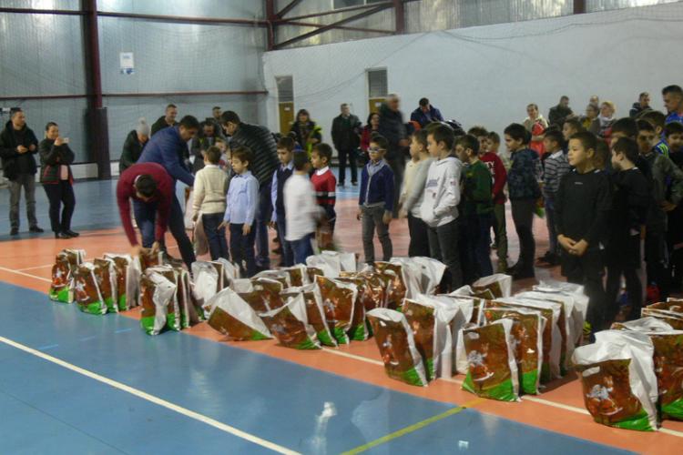 După o scurtă prezentare a rezultatelor obţinute de club în acest an, făcută de profesorul Mihai Anghel, copii şi-au primit cadourile.
