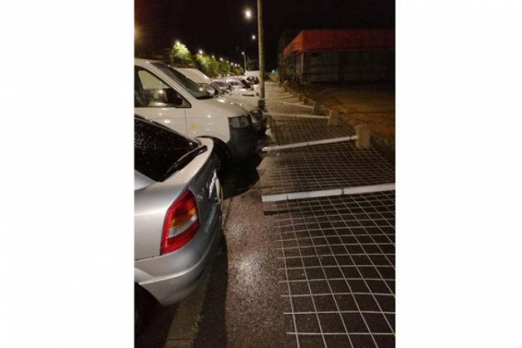 • gardul improvizat a fost dărâmat de furtuna de duminică seara • cei care îşi parchează maşinile în zonă se tem că situaţia s-ar putea repeta, existând riscul ca autoturismele să sufere avarii grave