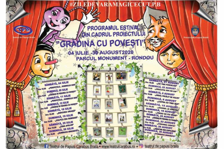 Începând de sâmbătă, 4 iulie, actorii Teatrului CĂRĂBUŞ din Brăila se vor reîntâlni cu publicul de toate vârstele la spectacole în aer liber. Locaţia desfăşurării spectacolelor este în Parcul Monument, la Rondou, începând cu ora 18:00, iar intrarea este liberă. Rezervarea locurilor se poate face la numărul de tel. 0787515344 de luni până vineri, între orele 8:00 – 16:00, în limita locurilor disponibile.