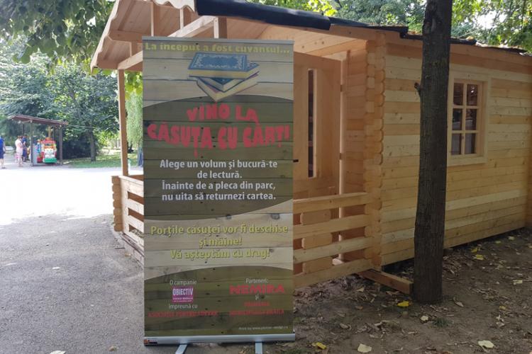 • sâmbătă, în prima zi de lansare a campaniei, zeci de vizitatori au venit la “Căsuţa cu cărţi” • cei mai mulţi dintre aceştia au fost copii, care imediat ce şi-au ales cărticica au “mers fuga” pe o băncuţă să o citească