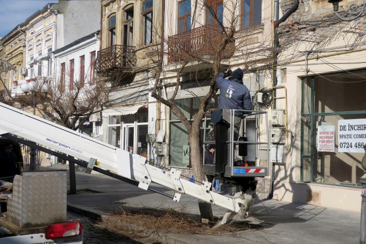 * încălzirea vremii a dat startul sezonului de toaletări și plantări * primii care au intrat la toaletat sunt salcâmii de pe strada pietonală Mihai Eminescu * în privința plantărilor, sunt pregătiți circa 50.000 de arbuști ornamentali, pentru garduri vii în jurul parcărilor recent amenajate