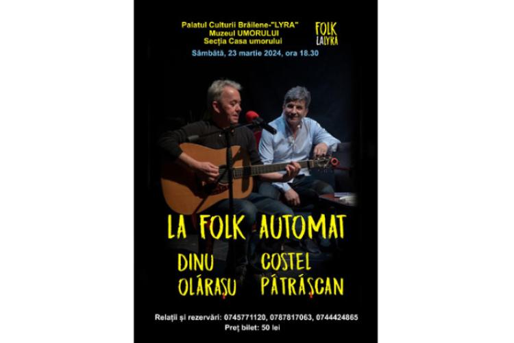 Spectacolul se numeşte „La folk automat” şi îl puteţi vedea sâmbătă, 23 martie, de la ora 18.30, la Palatul Culturii Brăilene – LYRA.