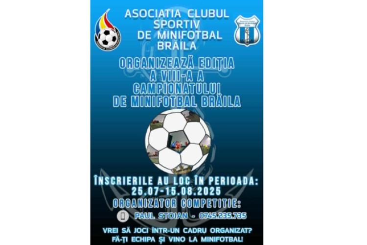 “Singura competiție oficială de minifotbal din județul nostru, organizată sub egida Federației Române de Minifotbal, de către Asociația Clubul Sportiv de Minifotbal Brăila, va începe la data de 31 august 2025.