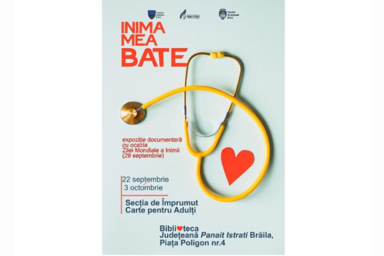 În perioada 22 septembrie – 3 octombrie 2023, Secția Împrumut pentru Adulți din cadrul Bibliotecii Județene ”Panait Istrati” Brăila organizează o expoziție documentară intitulată ”Inima mea bate”. Expoziția este dedicată Zilei Mondiale a Inimii și conține o serie de volume aflate în colecțiile bibliotecii.
