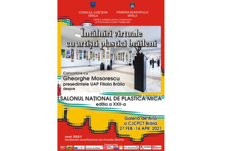 Potrivit organizatorilor, tema întâlnirii de marți, 18 mai 2021, este Salonul Național de Plastică Mică Brăila, ediția a XXII-a, care s-a desfășurat în perioada februarie – aprilie 2021. Lucrările celor peste 400 de participanți din toată țara au fost expuse în Galeria de Artă a Centrului Județean pentru Conservarea și Promovarea Culturii Tradiționale Brăila, din Piața Traian.