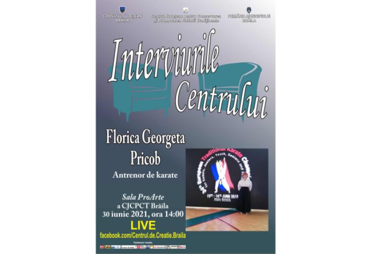 Consiliul Județean Brăila, Primăria Municipiului și Centrul Județean pentru Conservarea și Promovarea Culturii Tradiționale Brăila (CJCPCT) – Centrul de Creație organizează în ziua de miercuri, 30 iunie, începând cu ora 14.00, manifestarea „Interviurile Centrului”, având-o ca invitat pe Florica Georgeta Pricob, antrenor emerit de karate tradițional și președinte de club sportiv. Cu aceast prilej, brăilenii îi vor afla povestea de succes și o vor putea urmări în direct pe cunoscuta antrenoare de karate a Brăilei. „Sportivii pregătiți de dumneaei au dus faima orașului Brăila și a României peste hotare, devenind campioni mondiali și europeni într-unul din cele mai dure și dificile sporturi – karate tradițional”, se precizează în comunicatul remis de Centrul de Creație Brăila.