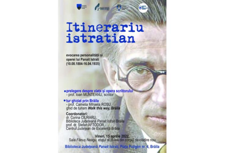 Vineri, 15 aprilie 2022, de la ora 10:00, o parte dintre elevii Centrului Județean de Excelență Brăila va participa la activitatea “Itinerariu istratian”, care constă într-o evocare a marelui scriitor brăilean Panait Istrati și amintirile despre orașul-port natal pe care acesta l-a descris în opera sa într-un mod inconfundabil. Elevii vor asista la o prezentare susținută de către prof. Ioan Munteanu, scriitor deja recunoscut pentru interesul pe care îl acordă memoriei culturale și istoriei locale brăilene, urmată de un tur ghidat “Pe urmele marelui Panait Istrati” realizat cu sprijinul prof. Camelia Mihaela Roșu, ghid de turism ”Walk this Way Brăila!”. Locurile în care marele nostru scriitor a lăsat o parte din sufletul lui vor fi descoperite pas cu pas.