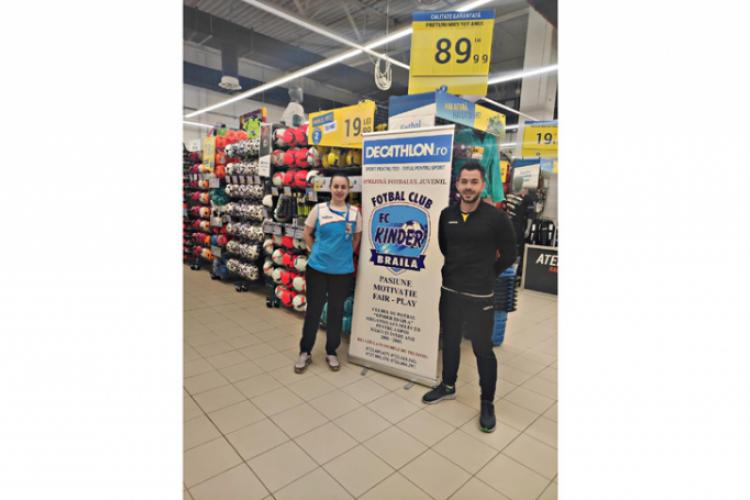 În urma rezultatelor obținute la turneele amicale disputate în Brăila și în țară, precum și a numărului mare de copii care vin să se inițieze în tainele sportului rege, clubul de fotbal Kinder Brăila a semnat un parteneriat cu Decathlon Brăila. Parteneriat care deja s-a concretizat printr-o investiție făcută de noul partener. Decathlon Brăila a oferit echipelor de copii și juniori ai clubului brăilean un rând de echipament de joc, urmând ca în două săptămânii micuții fotbaliști de la Kinder să primească și echipament pentru antrenamente.