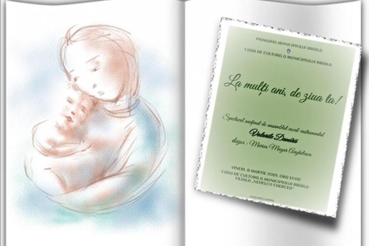 Sub genericul “La mulţi ani, de ziua ta!”, vineri, 8 martie 2019, începând cu ora 17.00, la Sala de spectacole a sucursalei Casei de Cultură a Municipiului Brăila din cartierul Chercea, membrii Ansamblului vocal-instrumental “Valurile Dunării”, sub bagheta instructorului Marius Mugur Anghelescu, vor susţine un spectacol în cadrul căruia vor interpreta cântece dedicate mamei, vor recita poezii, iar micii instrumentişti îşi vor demonstra îndemânarea prin scurte recitaluri la chitară, mandolină şi acordeon.