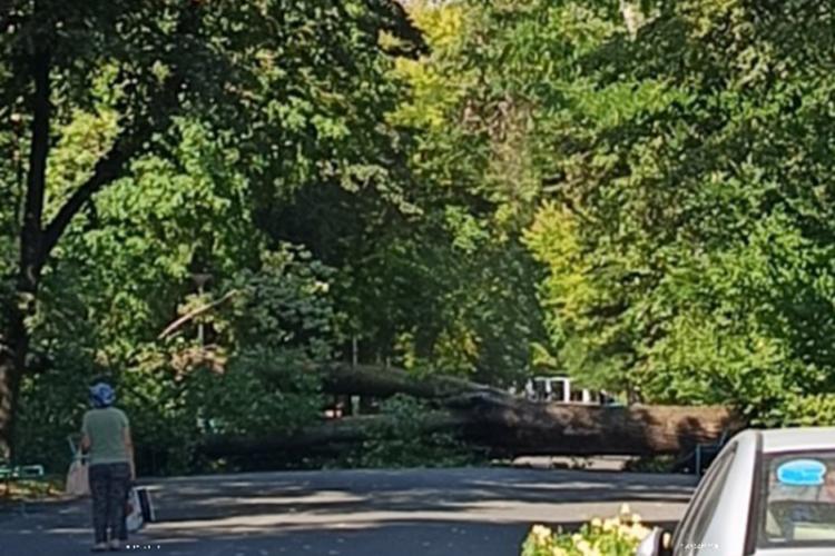 • un plop de mari dimensiuni s-a prăbușit, ieri, din senin, peste aleea principală a parcului, în zona fostului Cazino • copacul a căzut peste două bănci, dar din fericire nu era nimeni chiar în acel loc, deși pe alee se aflau câteva persoane