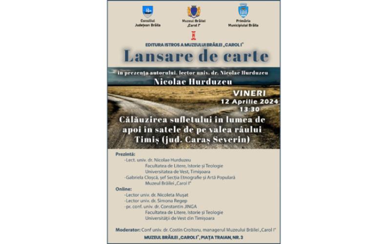 Muzeul Brăilei „Carol I” îi invită pe brăileni vineri, 12 aprilie, ora 13.30, la lansarea volumului „Călăuzirea sufletului în lumea de apoi în satele de pe valea râului Timiș (jud. Caraș Severin)” apărut, anul acesta, la Editura „Istros” a Muzeului Brăilei „Carol I”. Evenimentul va avea loc în prezența autorului, lector univ. dr. Nicolae Hurduzeu, la sediul central al Muzeului Brăilei „Carol I”, din Piața Traian nr. 3 – Sala „Regele Ferdinand I și Regina Maria”.