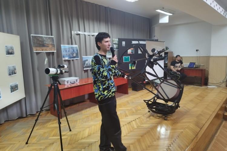 Andrei le-a prezentat elevilor noțiuni de astronomie, le-a arătat instrumentele pe care le deține, printre care se numără și cel mai mare telescop astronomic personal din țară, imagini realizate în cadrul ieșirilor organizate de astroclub și, bineînțeles, i-a invitat pe cei pasionați și curioși să li se alăture. În cadrul întâlnirii, tânărul pasionat de astronomie a vorbit și despre o mare problemă cu care ne confruntăm astăzi, cea a poluării luminoase, care capătă proporții covârșitoare odată cu dezvoltarea orașelor.