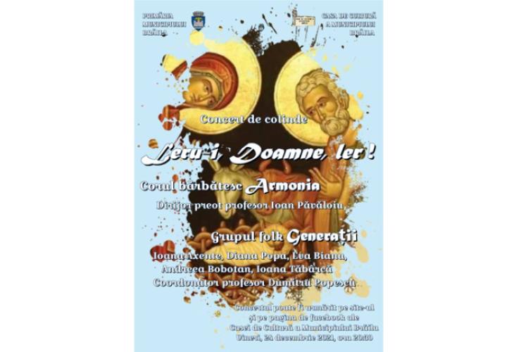 Astfel, Primăria Municipiului Brăila și Casa de Cultură a Municipiului Brăila îi invită pe brăilenii mari și mici la Concertul de colinde intitulat „Leru-i, Doamne, ler!”, prilejuit de apropierea marii sărbători a Nașterii Domnului. Potrivit managerului Casei de Cultură, Emanoil Ciucașu, concertul va putea fi urmărit în seara de Ajun, 24 decembrie 2021, începând cu ora 20.30, online, pe pagina de Facebook și pe canalul de YouTube ale Casei de Cultură a Municipiului Brăila.