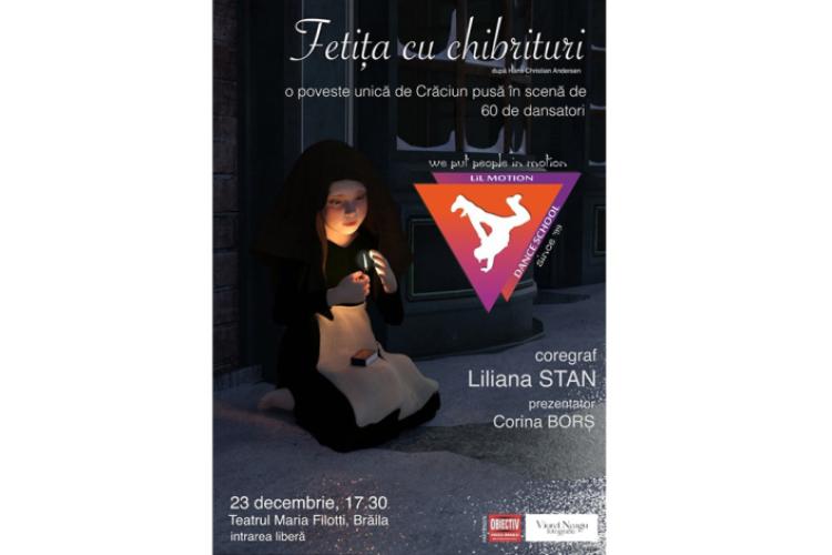 De mulți ani, în preajma Crăciunului, LiL Motion Dance School organizează un spectacol special, în care publicul brăilean este invitat să descopere magia dansului. Nici acest an nu face excepție, iar pe 23 decembrie, de la ora 17.30, la Teatrului ”Maria Filotti”, Sala Mare, 60 de dansatori, coordonați magistral de coregrafa Liliana Stan, vor susține două spectacole pline de emoție: ”Poveste de Crăciun” și ”Fetița cu chibrituri”.