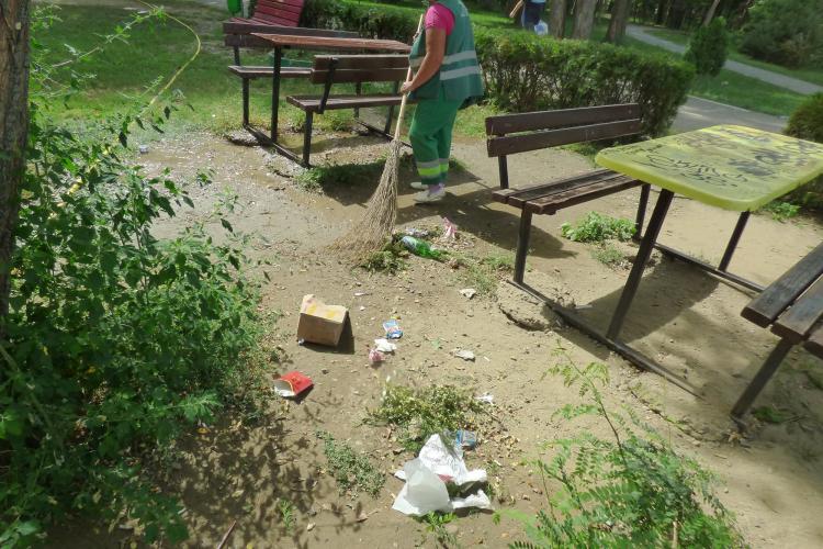 La început cochetă şi curată, respectiva dotare publică este acum cu mesele mânjite cu graffiti, bălăriile se dezvoltă în voie, din copaci atârnă crengi rupte şi uscate, florile s-au uscat de mult, iar mizeria şi gunoaiele lăsate în urmă dau de furcă angajaţilor firmei de salubritate RER. “Măturăm acum şi după câteva ceasuri e la fel. Se adună aici tot felul de boschetari, beţivi sau găşti de tineri. Iar acum mai trebuie să ocolim şi bălţile de apă de la un furtun de irigaţii spart în mai multe locuri”, ne-a spus o “salubristă”.