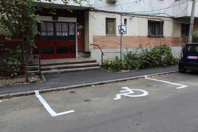 • un locatar reclamă faptul că persoana care a făcut marcajul respectiv are un loc rezervat de la Primărie, în parcarea din spatele blocului • reprezentanţii autorităţii locale spun că e ilegal să îţi trasezi singur un spaţiu, chiar şi pentru persoane cu handicap, mai ales când o faci chiar în dreptul unei scări