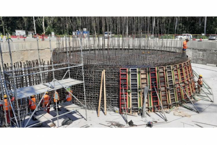 • şantierul a fost deschis în urmă cu mai bine de un an, însă până acum s-a lucrat mai mult în subteran, de la o cotă de zeci de metri adâncime, la fundaţiile blocurilor de ancoraj şi ale celor doi piloni ai podului • pilonul de pe malul brăilean a început să depăşească stadiul de fundaţie, lucrările fiind acum vizibile şi la suprafaţă • în final, cei doi piloni vor avea câte 192,64 m, fiind cele mai înalte structuri de pe teritoriul României