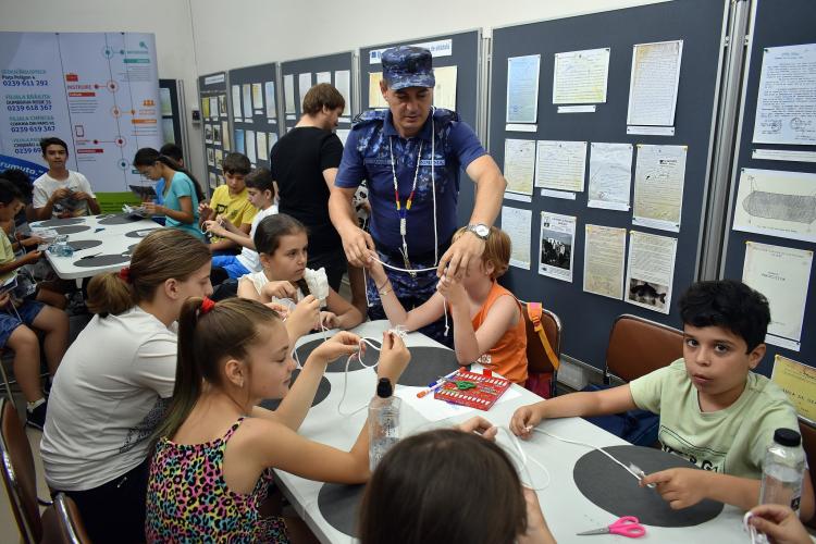 * în perioada 4-8 iulie, Biblioteca Judeţeană „Panait Istrati” Brăila a organizat, în colaborare cu Flotila Fluvială „Mihail Kogălniceanu”, Atelierul de matelotaj „Micul Matelot” * marinarii militari i-au familiarizat pe cei mici cu fluierul şi parâma şi i-au învăţat să creeze vestitele noduri marinăreşti * lucrările vor fi expuse la Promenada Mall (8-15 august), alături de machete de nave militare