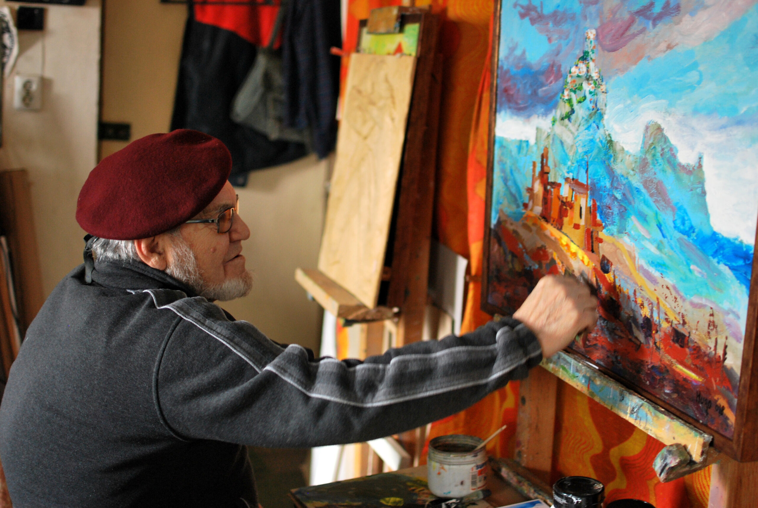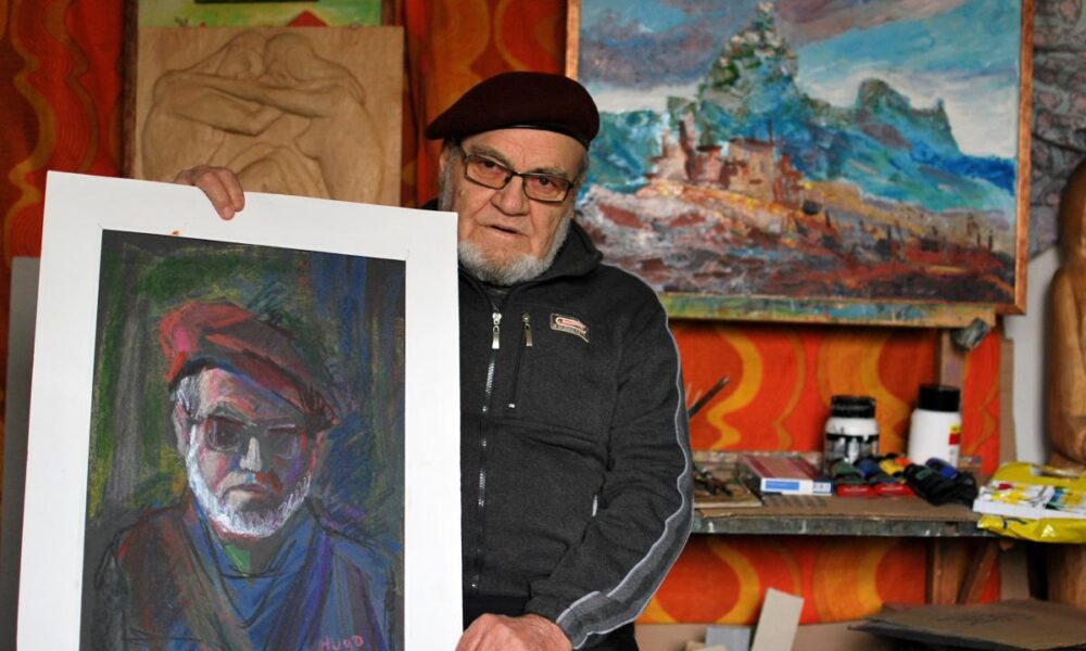 Înconjurat de sute de lucrări, maestrul Hugo Mărăcineanu – descendentul eroului de la Griviţa, de la 1877 – se încăpăţânează, mai abitir, să creeze. Nu pentru acum, ci pentru eternitate. Artistul – rămas orfan de tată în adolescenţă şi sprijinit la studii de mama sa, cu pensie de CAP de 45 de lei – pictează acum în frig, pentru că nu-şi permite luxul caloriferului: “Impozitul pe atelier, taxa la uniune, curentul şi întreţinerea îmi iau o pensie. Îmi mai rămân 11 pensii pe an”, ne spune, înainte de a ne arăta cu pasiune picturile, sculpturile şi desenele pe care le-a realizat – dar şi o icoană mai deosebită din atelier (“Icoana asta am adunat-o de la gunoi; era făcută bucăţi!”). Apoi ne recită cu mult patos din Eminescu, pentru că este îndrăgostit de “Luceafărul poeziei româneşti”.