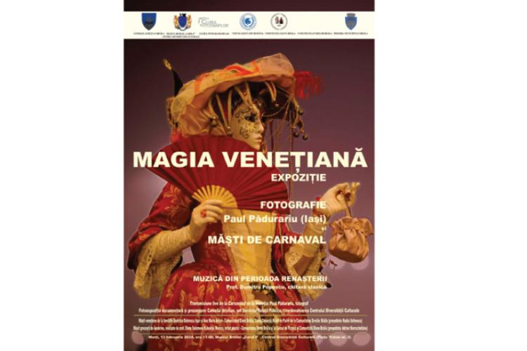 Marți, 13 februarie, de la ora 17.00, la Centrul Diversității Culturale al Muzeului Brăilei „Carol I” (Piața Traian nr. 3) are loc vernisajul Expoziției temporare „Magia venețienă”. Este vorba de o inedită expoziție de fotografie semnată de Paul Padurariu (Iași), precum și Măști de carnaval.
